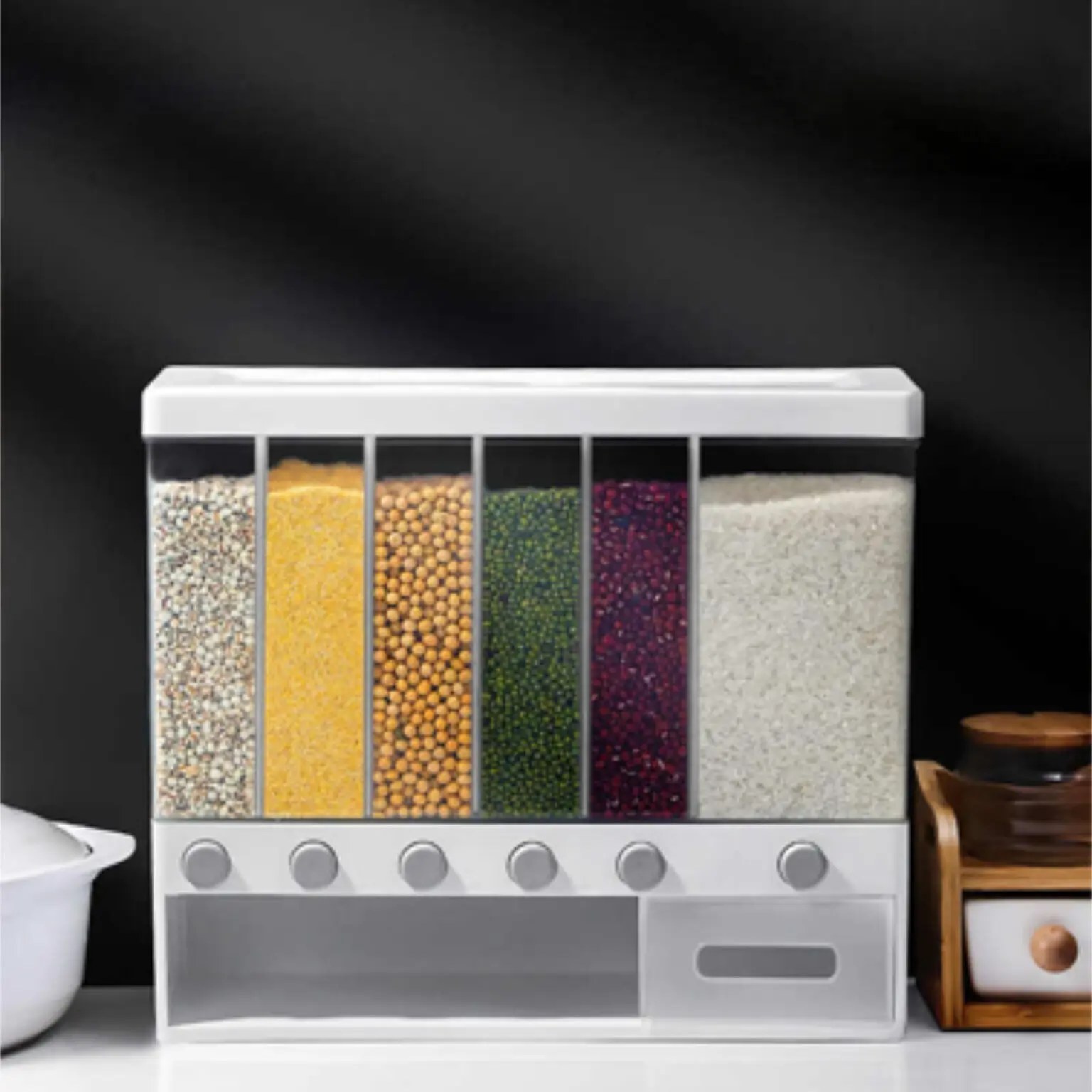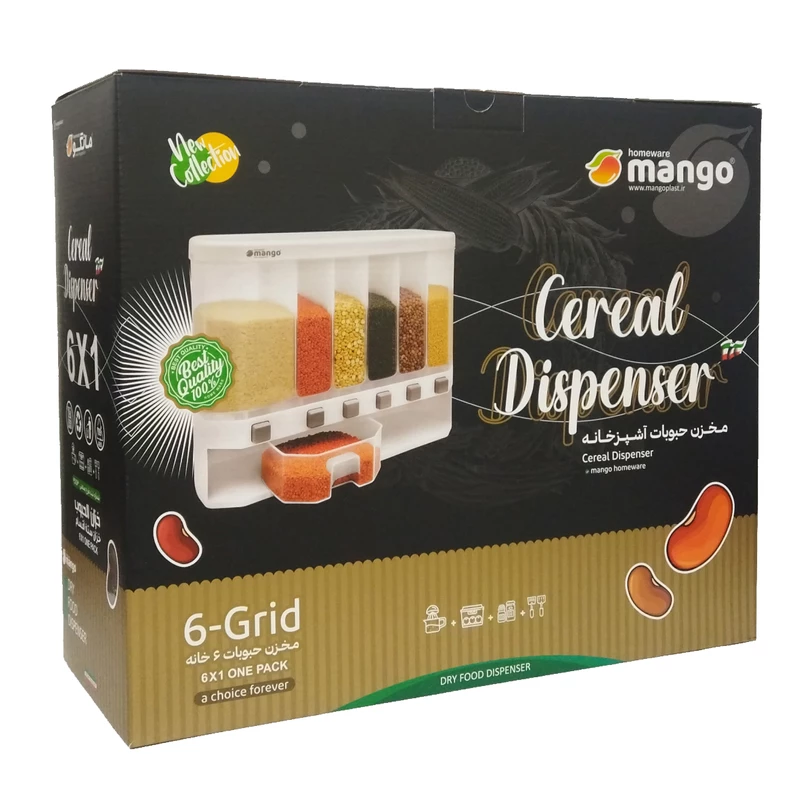 کشو حبوبات ۶ خانه دکمه ای Mango